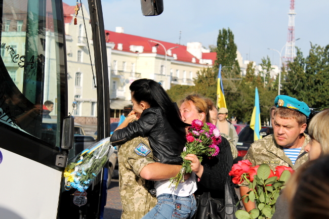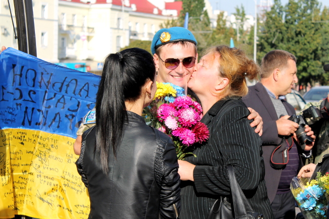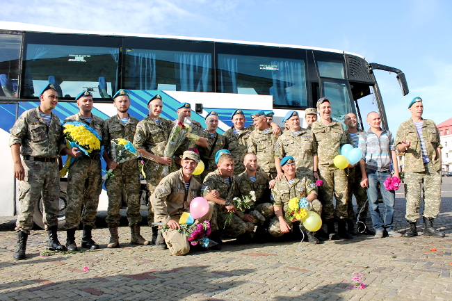 С духовым оркестром, цветами и брызгами шампанского встречали жители Чернигова демобилизованных бойцов 90-го отдельного аэромобильного батальона. Они возвратились героями!