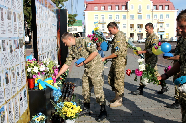 Бойцы почтили память погибших товарищей, возложив цветы у мемориального стенда Героям Небесной сотни.