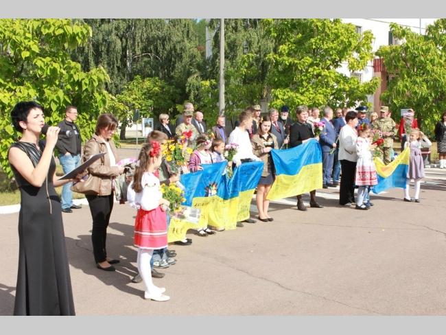 Школярі місцевої гімназії передали своїм батькам, які зараз міцно тримають оборону проти російсько-терористичного агресора на сході нашої країни, державні прапори з особистими підписами та побажаннями скорішого повернення до дому.