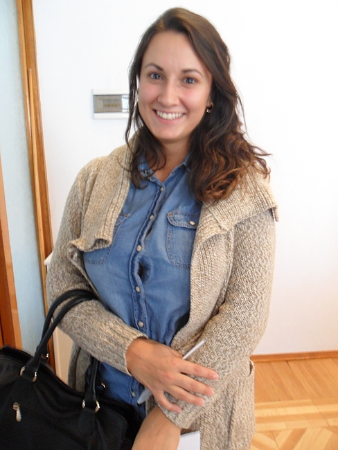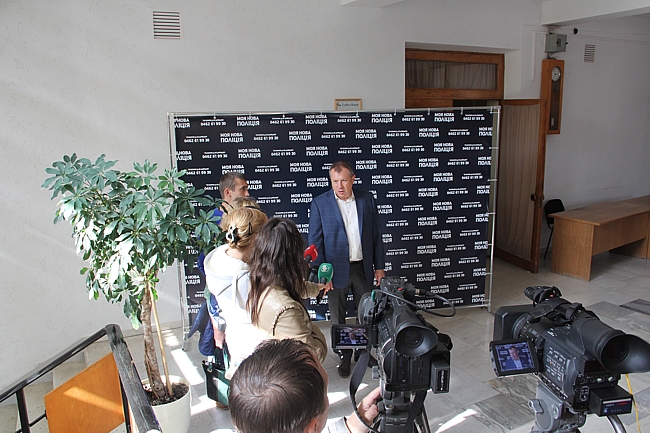 Журналистов и соискателей у входа встречает симпатичная девушка - Оксана Столяренко. Выясняется, что именно она курирует работу по приему анкет будущих полисменов в Чернигове: администратор приемной комиссии. Признается, что сегодня наплыв людей существенно меньше, а потому работать проще. Но от этого не менее интересней.