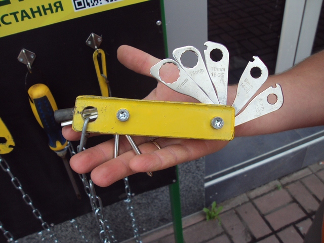 Если кому-то понадобится снять велосипедное колесо, то люди могут воспользоваться разводным ключом. Есть и семейный ключ с накидными ключами для болтов и гаек. Этот ключ расточен под 15 мм. Им можно подтянуть педали, если они ослабли.