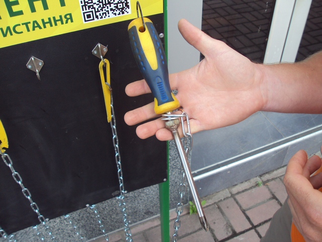 Не так давно возле магазина активного отдыха "Адреналин" по проспекту Победы,127 был установлен специальный стенд с инструментами, где любой велосипедист теперь может сделать небольшую техническую остановку и привести своего металлического коня в порядок. О том, какие именно есть инструменты на стенде и какие проблемы с их помощью можно устранить журналистам интернет портала gorod.cn.ua рассказал сотрудник магазина "Адреналин" Александр Тепенко.