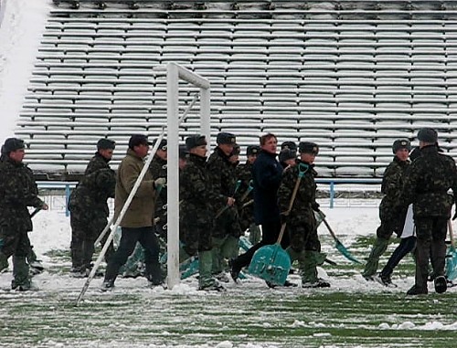 Вчерашний матч футобольного Чемпионата Украины среди команд первой лиги между черниговской «Десной» и ивано-франковским «Прикарпатьем» на стадионе имени Ю.Гагарина прошел благодаря помощи курсантов Черниговского юридического колледжа и военных железнодорожного полка г. Чернигова.