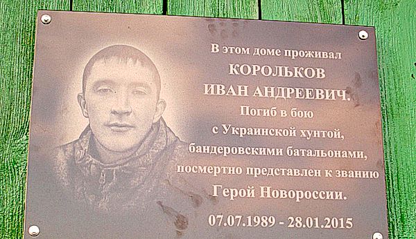 В Алтайском крае, в селе Озерки, открыли мемориальную доску танкисту Ивану Королькову, погибшего в боях при штурме города Дебальцево, участвуя в конфликте на стороне пророссийских террористов.
