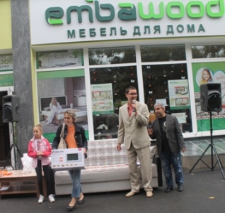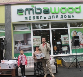 Несмотря на капризы погоды, на празднике 27 сентября, приуроченном годовщине открытия EMBAWOOD, лица участников сияли радостью. И это неудивительно. Ведь помимо покупки качественной и экологической мебели каждый покупатель был рад шансу получить подарок и принять участие в розыгрыше суперприза – ДИВАНА.