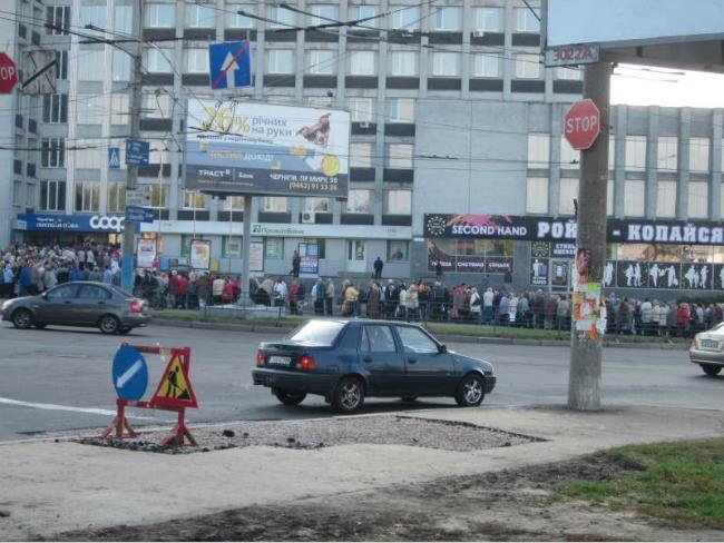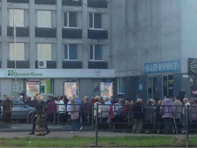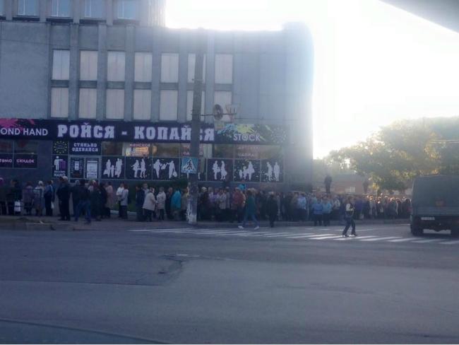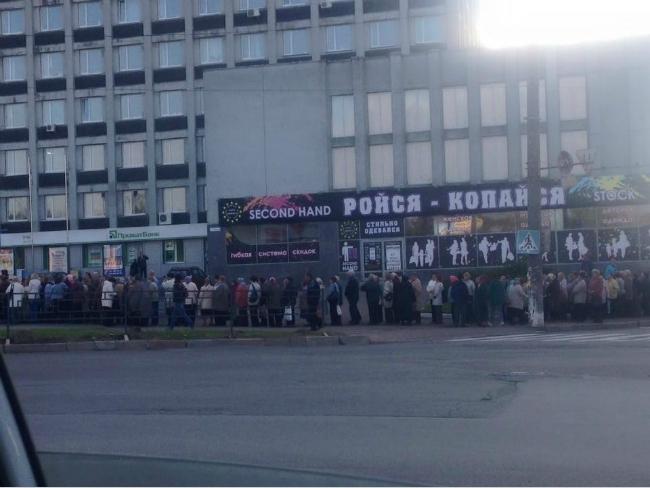 Как сообщают люди, что стоящие в очереди к зданию, где расположен пенсионный фонд – дают матпомощь в размере 500 грн. Чтобы ее получить, надо предъявить справку, что твой доход – пенсия, менее 1300 грн.