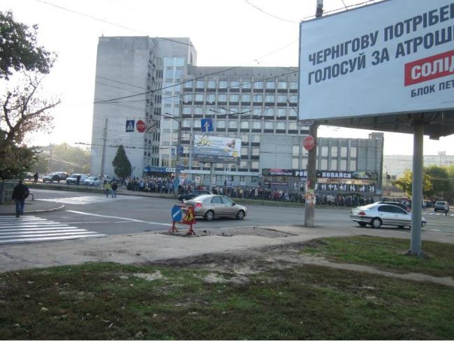 Сегодня 5 октября, на проспекте Победы, 139 можно было видеть серьезные очереди людей. Как обычно бывает, в предвыборную пору такое скопление можно наблюдать, когда кто-то из кандидатов раздает продукты или деньги с барского плеча.