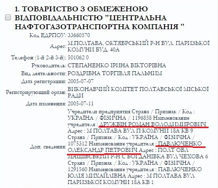 "Примечательно то, что этот Роман Дружбин ранее основал ООО Центральная нефтегазотранспортная компания совместно с полтавским бизнесменом Александром Павлюченко", - отметил Гнап.