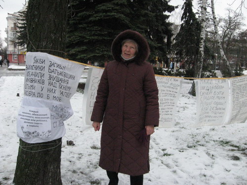 Цього разу пікет малочисельний, всього дві людини, проте тривалий — пікетувальники простояли там більше п'яти годин і надалі продовжують стояти. Під стіни до адміністрації Ганна Степаненко та Ніна Мусієнко прийшли просити допомоги губернатора у вирішенні їхніх проблем.