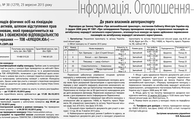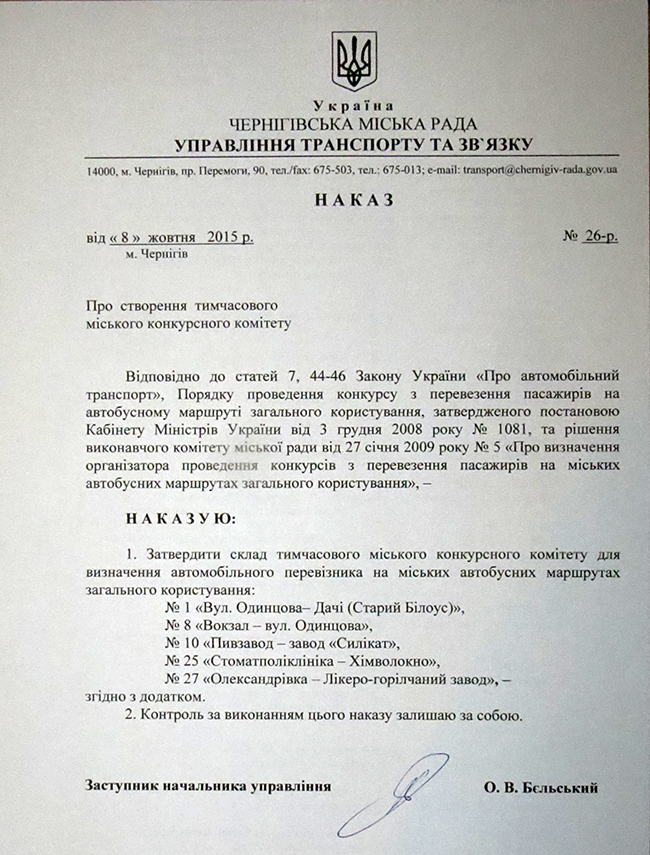 Итак, вернемся к объявленному конкурсу. В объявлении, размещенном в «Черниговских ведомостях» говорится о том, что на конкурс выставляются пять маршрутов: №1, 8, 10, 25 и 27. Как говорится, маршруты не самые последние. А можно сказать, что даже очень и очень прибыльные: например, №1, № 8, №25 и №27.