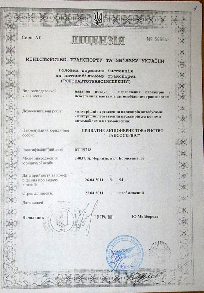 – ЧАО «Таксосервис» – 2 пакета документов;