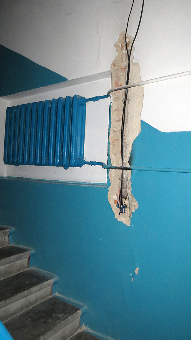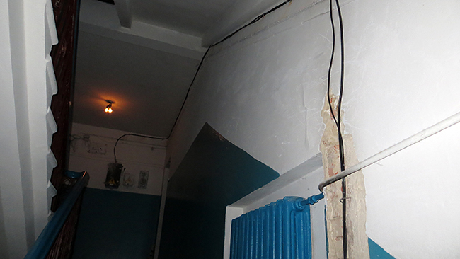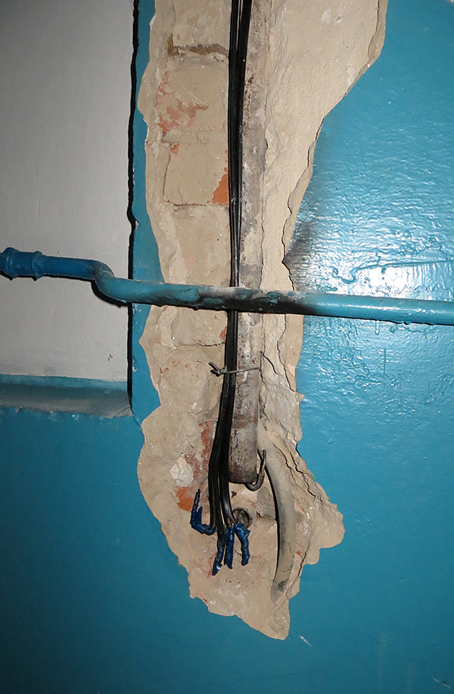 Казалось бы, место повреждения установлено. И теперь работники КП «Новозаводское» должны были приехать и заменить поврежденный участок кабеля, проложив его в стене подъезда и заделав повреждения самой стены. Но, не тут-то было!