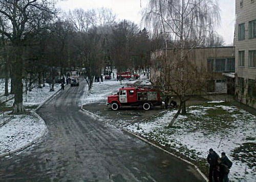 Информация о пожаре в «политехе» (Черниговский технологический университет, расположенный на перекрестке улиц Шевченко и Рокоссовского) «повалила» на редакционный телефон 27 ноября, начиная с 11.17. «Пожар в «политехе»! Пожар в корпусе сварщиков!