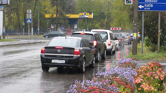 После недавнего открытия торгово-развлекательного центра, поток автомобилей на перекрестке ул. Киевская и ул.77 Гвардейской Дивизии многократно увеличился: теперь и без того опасный выезд с Киевский реально сопряжен с риском для жизни. Если правый поворот с ул. Киевская из-за потока машин стал сложнее, то левый поворот (в сторону ул. Героев Чернобыля) – практически невозможен: машины по десятку минут ждут возможности «проскочить». Про опасность для пешеходов вообще говорить не стоит – водители на них просто не обращают внимания. Решить проблему мог бы светофорный объект, который с 2012 года стоит на этом перекрестке.