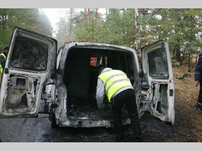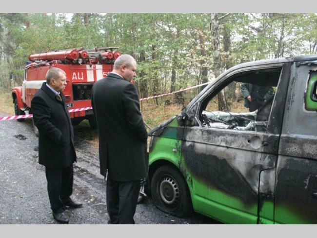 Известно, что микроавтобус отклонился от маршрута и сгорел. Остатки автомобиля были обнаружены в сотне метров от автодороги Киев-Чернигов. В салоне находились три трупа.