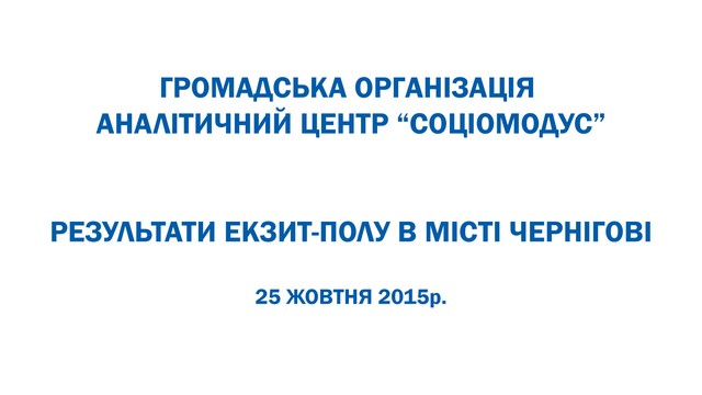 Екзит-пол проводив Аналітичний центр «Соціомодус» на виході з виборчих дільниць 25 жовтня 2015 року. Опитування виборців проводилося з моменту відкриття і до закриття дільниць із використанням покрокового методу відбору респондентів, водночас крок коректувався залежно від активності виборців. Екзит-пол проводився методом імітації голосування: в коробку у вигляді урни виборці кидали заповнену анкету (бюлетень). Опитувані самостійно заповнювали анкету, при цьому інтерв'юер не бачив їх відміток, що дало змогу зберегти повну конфіденційність і таємницю голосування, а також нівелювати статистичну похибку. Усього було опитано 4 941 виборців по кандидатах на посаду мера м. Чернігова і 4 901 - по кандидатах від політичних партій до міської ради. Статистична похибка не перевищує 1,0 %.