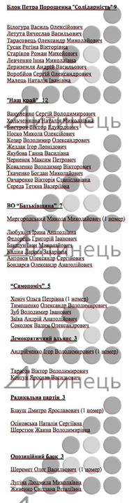 "Детинец" обнародовал список тех, кто прошел в горсовет Чернигова