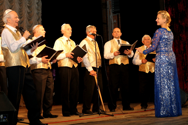 А после официальной части на сцене городского Дворца культуры пела и плясала еврейская душа. Традиционно, не пропуская ни одного выступления в рамках еврейских культурных мероприятий, зрителей радовал мужской хор «Голдене менер» и его солист Семен Рудницкий, который по праву носит титул «Золотой голос».