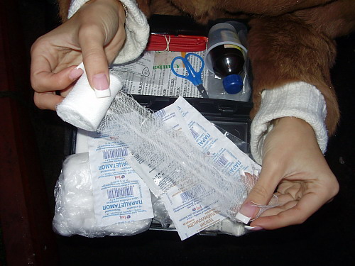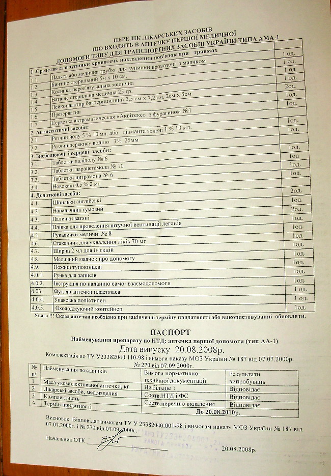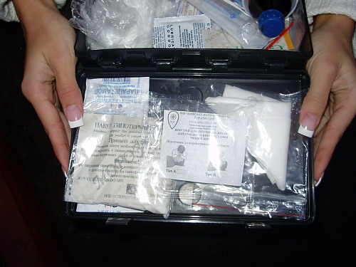 После недавнего повышения штрафов водители подсуетились и начали приобретать аптечки, чтобы лишить гаишников очередного повода для взысканий. К нам в редакцию обратился возмущенный водитель. Молодая девушка по имени Виктория продемонстрировала нам содержимое медицинской аптечки, которая рекомендована Госстандартом. Она приобрела ее в автомагазине «Айрон» за 30 грн.