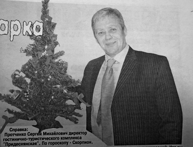Справка: Протченко Сергеи Михайлович директор гостинично-туристического комплекса "Придеснянская". По гороскопу - Скорпион.