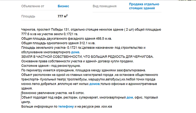 «ЗЕМЛЯ В ЧАСТНОЙ СОБСТВЕННОСТИ, ЧТО БОЛЬШАЯ РЕДКОСТЬ ДЛЯ ЧЕРНИГОВА», – пишет автор объявления крупными буквами и добавляет: «Возможно увеличение участка. на 6 соток». И заявление о расширении земельного участка вполне обосновано, поскольку решение сессии горсовета о довыделении земли под строительство никто не отменял.
