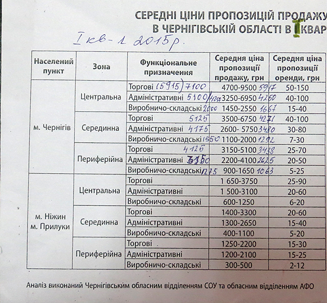 Интересно и то, что в «шпаргалке» с усреднённым расчётом оценочной стоимости ПРОДАЖИ зданий на 2015 год, который использовала Инна Дусь в качестве аргумента объективности оценки объекта,, для периферийного района Чернигова была проставлена цена в 3150 грн, а не в 2,5 тыс грн, как оценили здание. Возникает вопрос: почему и для каких целей здание оценили по минимально возможным ценам 2014 года?