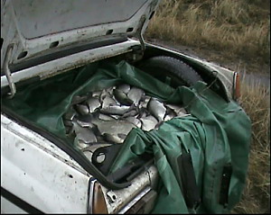 Не звернути увагу на старенький «Москвич», який ледь рухалась дорогою, було не можливо. Зовнішнє спостереження свідчило про те, що транспортний засіб явно несправний. Співробітники ДАЇ зупинили підозрілу автівку, поговорили з водієм, а потім вирішили оглянути машину. А там, у багажнику, - гумовий човен та свіжа риба! І риби не мало - близько 30 кілограмів (лящ - 26 штук, плоскирка - 73 штуки, сом - 3 штуки)!