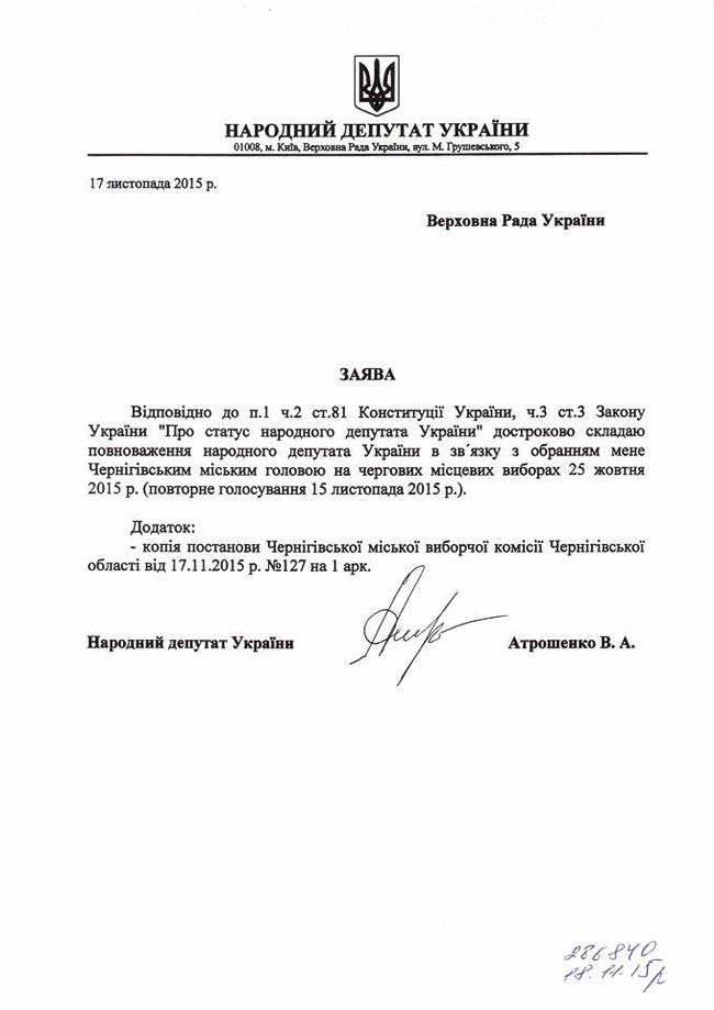 Теги: Атрошенко, заявление, народный депутат
