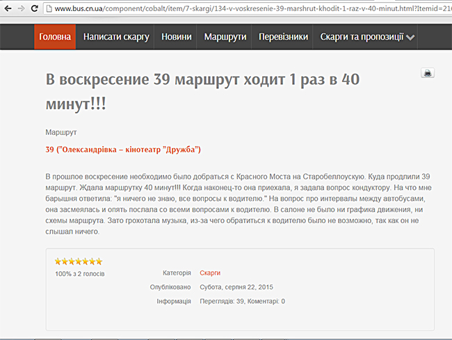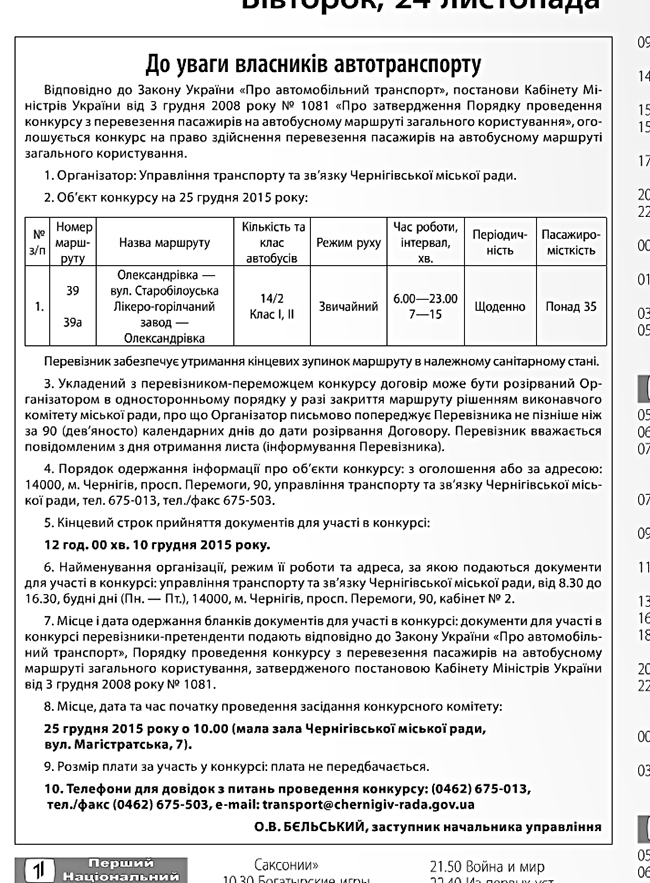 Одним из аргументов для проведения таких изменений, который в комментарии привел нам заместитель начальника управления транспорта и связи Черниговского горсовета Александр Бельский, было то, что управление дважды проводило конкурс по маршруту №27 и дважды транспортные средства, выставляемые перевозчиками на этот маршрут, не соответствовали условиям конкурса.