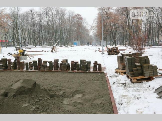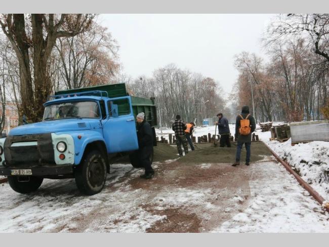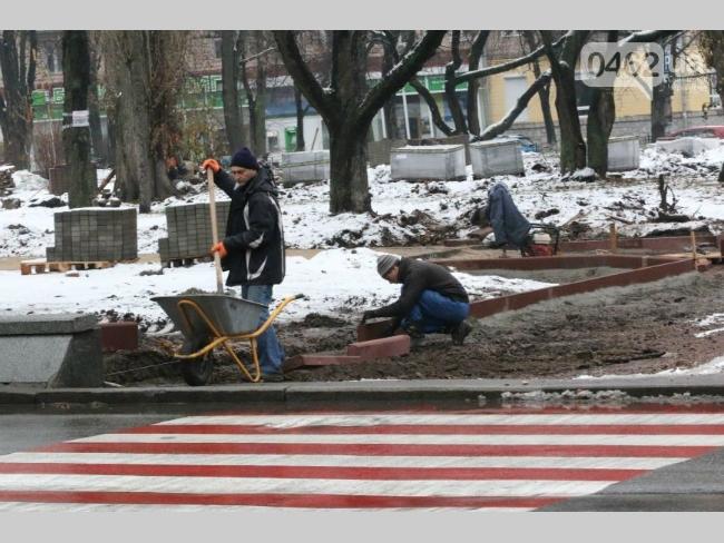 Дороги в Чернигове продолжают мостить плиткой, несмотря на снег