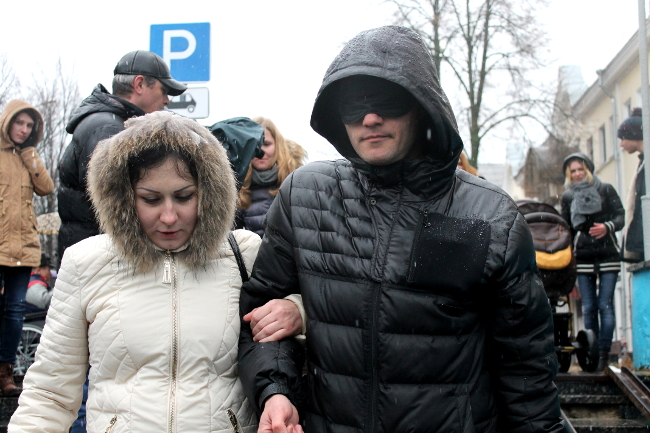 – Я сегодня выступал в роли незрячего. Передвигаться очень тяжело, все чувства обострены, а особенно слух. Все время боишься оступиться или столкнуться с чем-то. А когда по пути кто-то из журналистов мне задал вопрос, я даже не мог говорить. Такое было напряжение, – говорит Григорий Федорец, новоизбранный депутат городского совета.