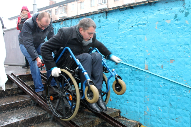 Общественная организация «Голос батьків» предложила депутатам новоизбранного городского совета ощутить себя на месте людей с ограниченной мобильностью. Им предложили добраться от городского совета до гостиницы «Украина»: преодолев маршрут в инвалидной коляске; пройти с завязанными глазами улицами города в сопровождении поводыря; пройти маршрут, в который включен подземный переход, с детской коляской; побывать в роли сопровождающего ребенка в инвалидной коляске.