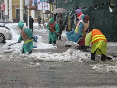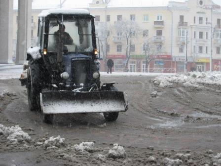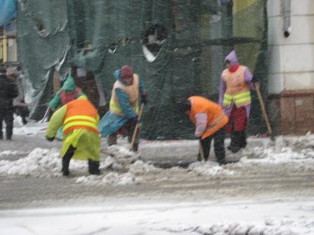 Начало второй недели зимы отметилось настоящим снегопадом. И коммунальные службы Чернигова, согнав технику в центр города с самого утра пытались очистить от снега сквер им. Попудренка, Красную Площадь и территорию возле горсовета.