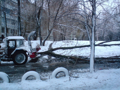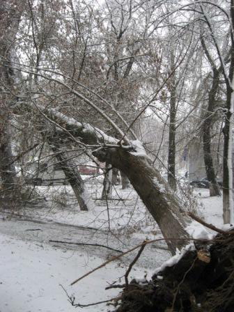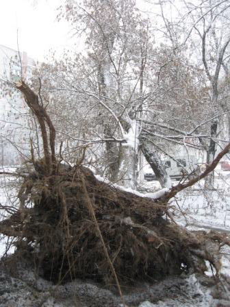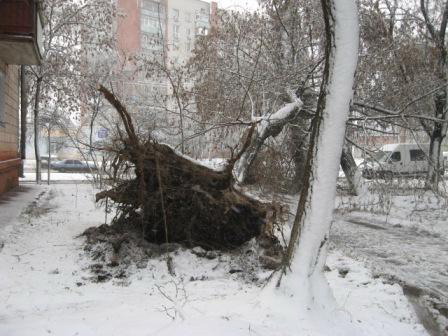 Значительные порывы ветра продолжают выкорчевывать деревья на улицах и во дворах областного центра. Этой ночью произошло сразу два таких случая. Первый по адресу Щорса, 29, где рухнул огромный тополь. Оборвало линии электропередач и целый дом остался без электричества. Второй инцидент имел место по адресу Рокоссовского, 18 – там так же дерево обрушилось на провода. Но уже в 8:30 утра его приехали эвакуировать на тракторе службы ЖКХ. Все это время провода лежали на проезжей части. В этом же районе возле столика на детской площадке вырвало с корнями еще одно дерево.