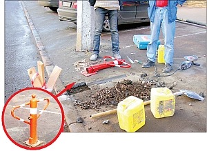 В пятницу на парковке около "Нового Чернигова" от напряга технической мысли было действительно жарко. Наверное, именно поэтому в городе и стояла такая высокая температура, несвойственная для декабря. Но это все - шутки. Если серьезно, то ограничителей, установленных на всех парковочных местах, уже не было - от них остались одни дырочки в асфальте. Один "ушастый стопор" пытались углубить в землю двое рабочих. Ответственный за парковку заверил, что по названной нами проблеме в "Новый Чернигов" никто не обращался! А пробить колесо можно было где угодно!