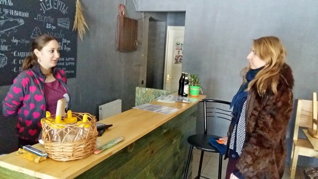 Спустя непродолжительное время в кафе появляется еще одна девушка – Эля Мамедова с красивой татуировкой на правой руке. Она же и официантка. По просьбе Андрея помощница украсила елочку дополнительной гирляндой и включила на ноутбуке рождественские песни. Она оказалась автором красивой глиняной посуды на столах. Девушка не на шутку увлекается гончарным искусством. В будущем планирует открыть свою мастерскую, чтоб проводить курсы обучения на гончарном круге для детей и взрослых.