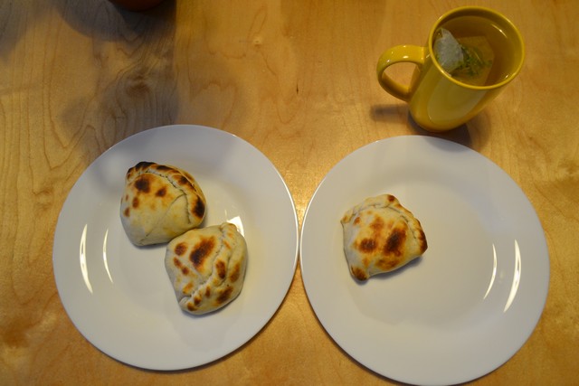В овощных «колобках», нам мясоедкам не хватало того самого мяса и возможно какой-то пикантности, тем более, что по виду они были похожи на лаваш-пельмень, а такое тесто у многих ассоциируется с восточной кухней. У сладкого самоса была начинка из фруктов-ягод, которые, Андрей и семья, заготавливали еще с лета, планируя открыть кафе. Закатали и немало консервации – в лаваше с фалафелем – были соленые огурчики по семейному рецепту Гальченко.