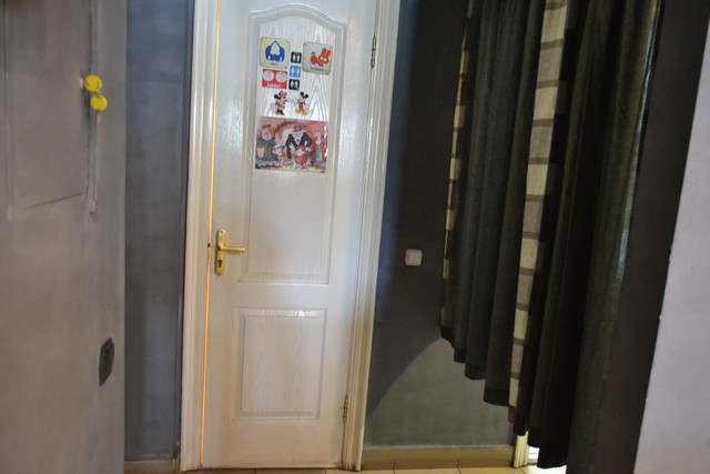 За углом кухня, которая отделена от коридорчика, что ведет в туалет и еще одну комнату, (скорее всего, хоз-назначения) холщовой шторой.