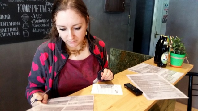 Как выяснится позже, он многое здесь делает самостоятельно – сам разрабатывал интерьер и своими руками шил мягкие кресла, сколотил всю деревянную мебель (единственная купленная вещь, не считая музыкальной аппаратуры – диван – прим.авт.), готовит вместе с еще одной девушкой-поваром, контролирует доставку и делает закупки продуктов. Помимо Андрея – в коллективе одни девушки, хотя парни до этого были, но не прижились.
