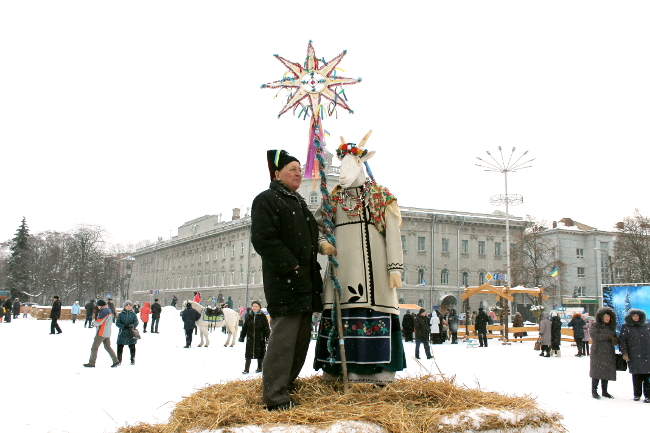 Свершилось! Дождались! Христос рождається! Славімо його! 8 января к празднованию Рождества Христова в Чернигове на Красной площади стартовал зимний фольклорный фестиваль «Коза».