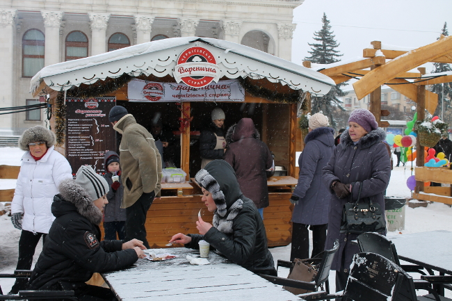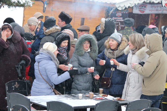 Детская сцена с праздничными вертепами и развлечениями, ярмарка хенд-мейда, горячие напитки и вкусная еда от лучших рестораторов. Все это ликует, дымит и пахнет! И мелкий снег, шедший с самого утра, вовсе не портит веселого настроения, а когда на сцену фестиваля вышли лучшие фольклорные коллективы – он и вовсе перестал.