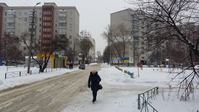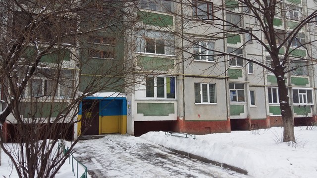 Тут из подъезда, окрашенного в цвета украинского флага, вышел молодой мужчина, который и сообщил, что мы нашли нужный адрес. Он подтвердил, что вчера приезжала милиция и медики, которые и увезли буйного соседа, как он предполагает, в Халявин.