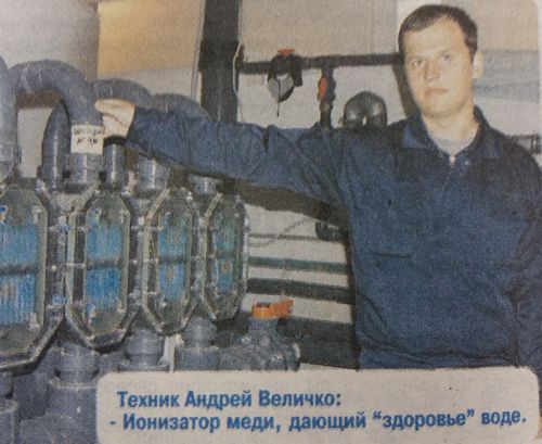 - В здании комплекса всегда находится дежурный техник, который осуществляет контроль за всеми системами жизнедеятельности комплекса, говорит Татьяна Васильевна. Вода очищается путем ионизации, проходя через медные и серебряные пластины» Автоматическая система контролирует количество ионов меди и серебра в воде. Но кроме этого, мы постоянно берем воду на анализ содержания в ней ионов меди и серебра и бактериологию. Поддержание бактериологического уровня и контроль параметров всех систем производится автоматически и выводится на пульт, на котором также отображается температура воды в чаше бассейна (28 градусов) и температура воздуха непосредственно в помещении бассейна (30 градусов).
