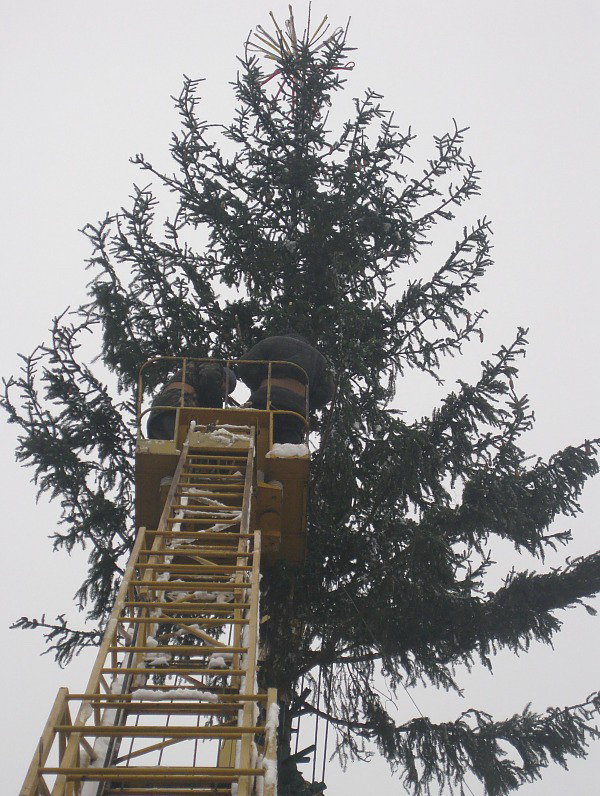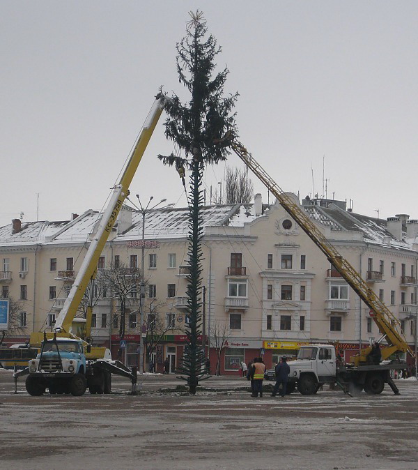 Сегодня, 15 декабря, на Красной площади Чернигова ставили елку. Все как обычно — установлен каркас (высотой 16 метров), привезены еловые ветки. В первую очередь самые опытные коммунальщики (те, кто из года в год занимается главной черниговской новогодней красавицей) «лепили» верхушку. А это дело очень серьезное, как заверил мастер «елочной» бригады. Так что только завтра можно будет увидеть на площади полноценную елку.