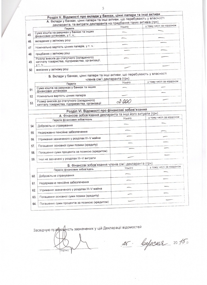 Щодо статьків у 2014-му році, то згідно декларації вони становили: