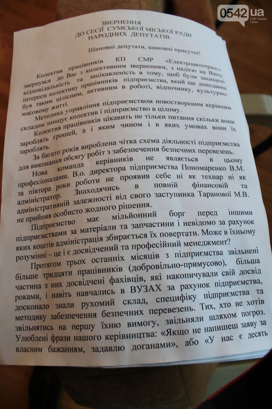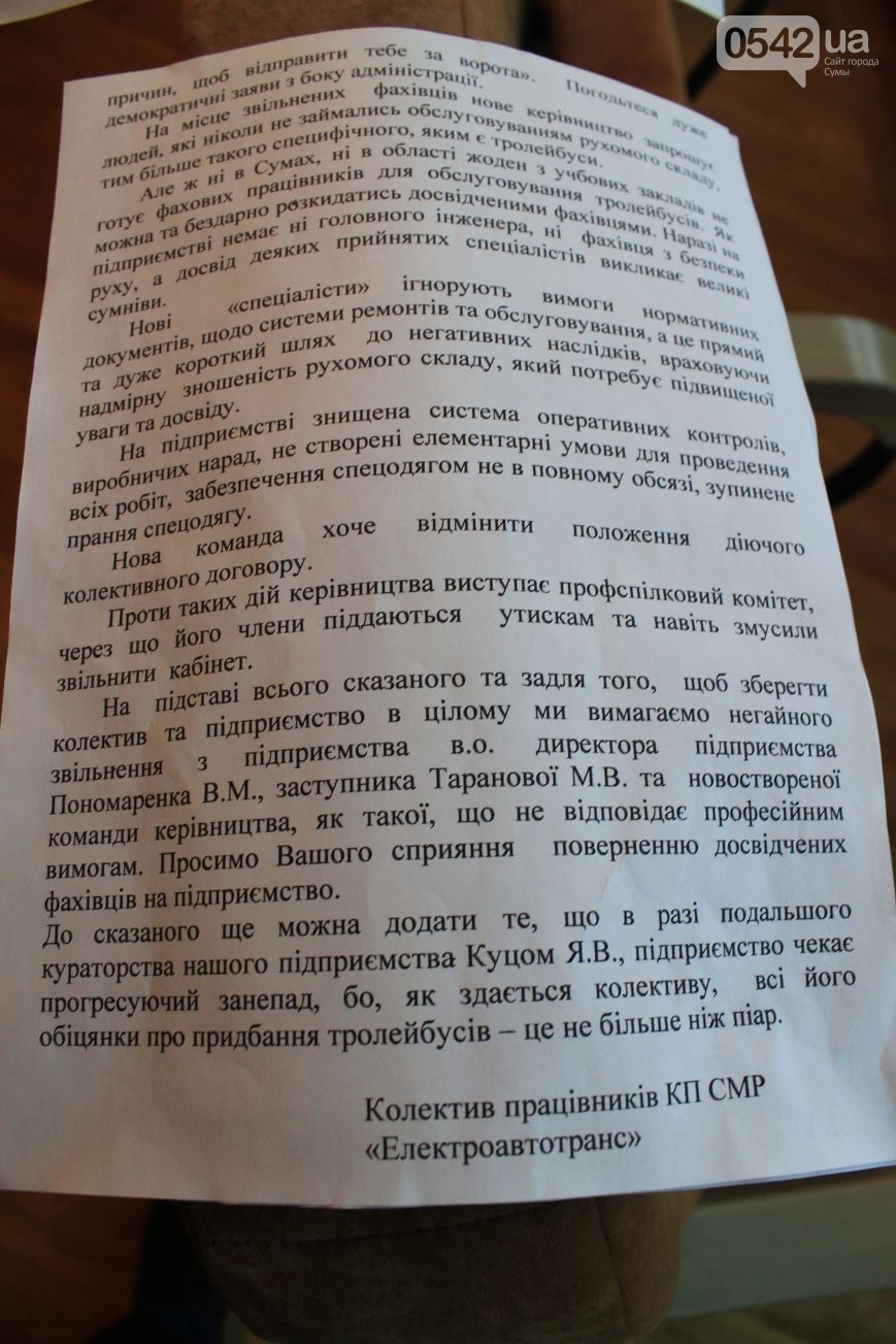 За інформацією сайту сумських новин «Данкор», своє обурення працівники висловили і тоді вже директору міського департаменту інфраструктури Ярославу Куцу, у віданні якого знаходиться їхнє підприємство. Його звинуватили у розвалі КП, боргах по заробітній платі та в тому, що з підприємства пішли кваліфіковані кадри, яких ніким замінити.