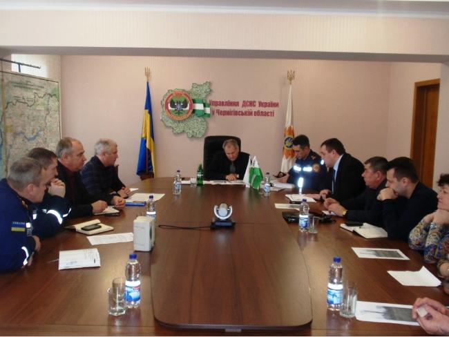 26 лютого в Управлінні ДСНС у Чернігівській області під головуванням першого заступника голови облдержадміністрації Леоніда Сахневича відбулось засідання обласної комісії з питань техногенно-екологічної безпеки та надзвичайних ситуацій. На ньому відповідним службам були поставлені першочергові завдання щодо підготовки та проведення мінімізації можливих наслідків аварії та надання першочергової допомоги населенню. Після засідання комісії керівництво ОДА, Департаменту з питань цивільного захисту та оборонної роботи та УДСНС в області виїхали на місце події.