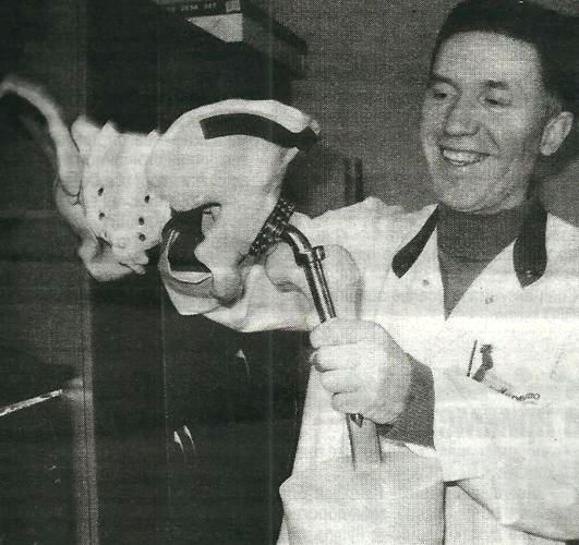 Юрій Ігнатенко показує конструкцію Сиваша. Її принцип, частково, в основі сучасних ендопротезів