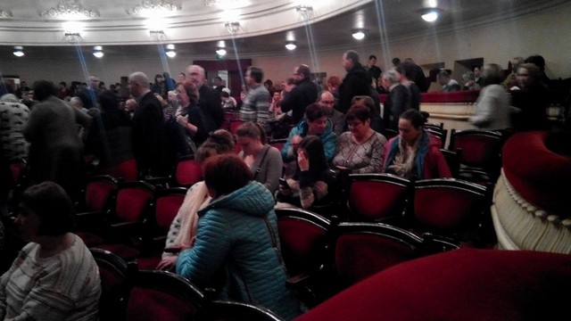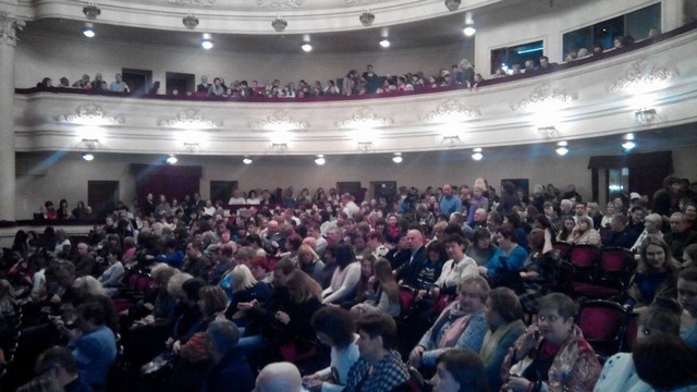 Заходим в зал. Везде – люди, мест свободных практически нет. Многие здороваются, переговариваются, фотографируются, рядышком стоят телекамеры. Суеты много. Занимаем свои места в зале. Возле нас доставляют свободный стул. И вот, отзвенели театральные звонки, свет потихоньку гаснет, на сцену выходят ведущие. После коротенькой преамбулы, на сцене появляются директор областного музыкально-драматического театра Сергей Моисеенко, гости и чиновники. Звучат слова благодарности в адрес облгосадминистрации – за выделенные финансы. И, наконец, произносится фраза: