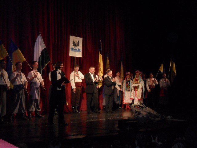 Церемониал соблюден полностью: обязательно исполнение государственных гимнов трех стран – участниц фестиваля – Беларуси, Польши и Украины. Украинский гимн звучит последним, из зала не видно, поют ли его чиновники, но среди публики слышно, как зрители напевают куплеты и припев.